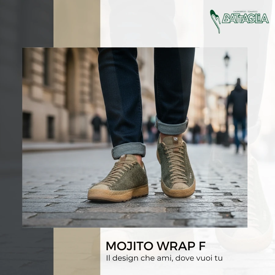 Mojito Wrap F, sneaker in pelle con fascione applicato a mano e realizzato in gomma dal colore naturale ad effetto crepe.